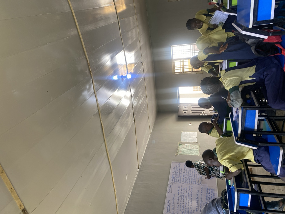 A daytime indoor scene depicts a classroom in the city of Kuru Karama, Nigeria