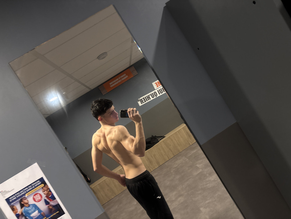 - "A shirtless young man with defined back muscles takes a photo of himself in a gym mirror" by FM-Az2kA2, licensed under CC BY 4.0