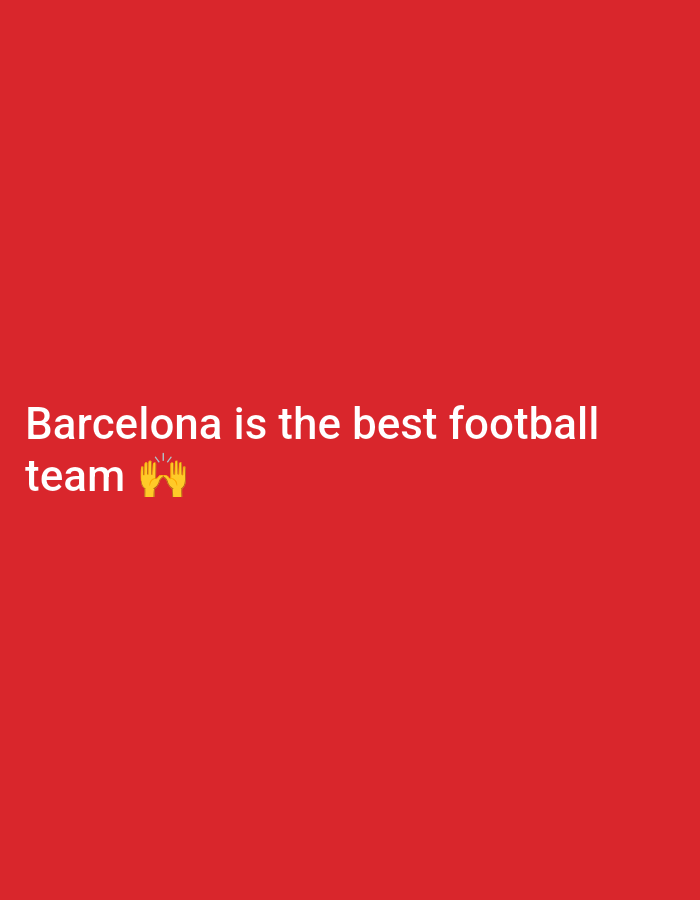 The scene, situated in the city of Langen, Germany, is a digital graphic. It features a solid red background. In the lower-left quadrant, white, sans-serif text is displayed, reading: 'Barcelona is the best football team'. Immediately following the word 'team', two yellow clapping hand emojis are present. No individuals, physical objects, discernible actions, interactions, or specific environmental elements are visually depicted within the graphic.