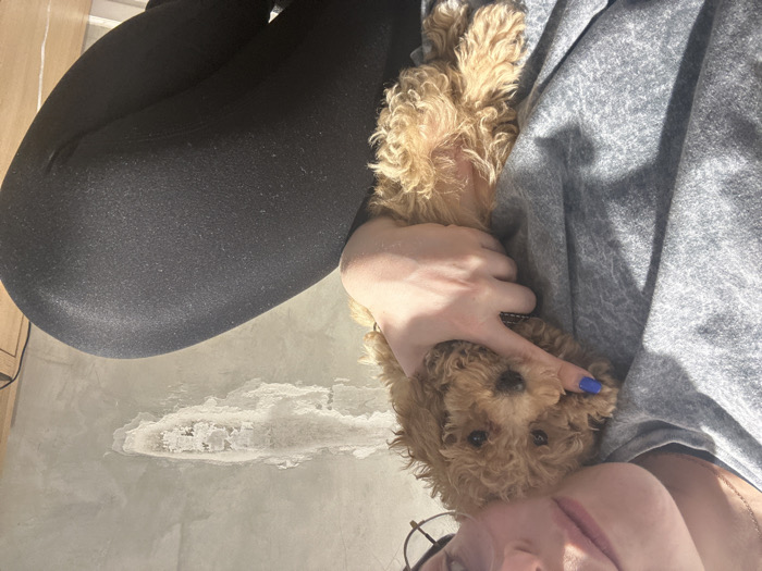 - "The scene depicts an individual holding a light brown, curly-haired puppy indoors in Madrid, Spain" by FM-6GjX42, licensed under CC BY 4.0