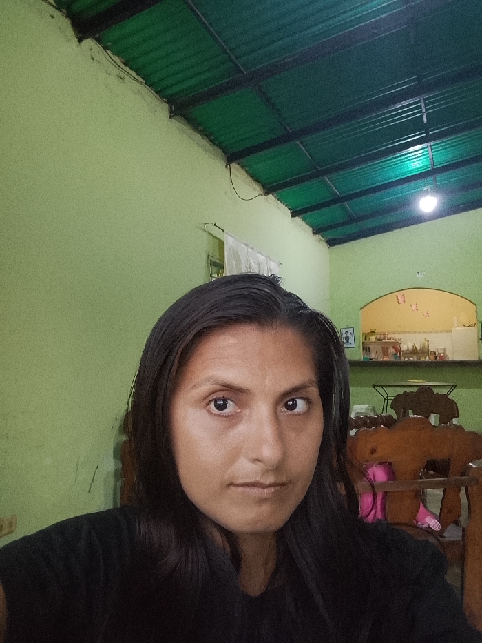 The image displays an adult female in a direct gaze, occupying the foreground of an indoor setting within the city of Altagracia, Venezuela