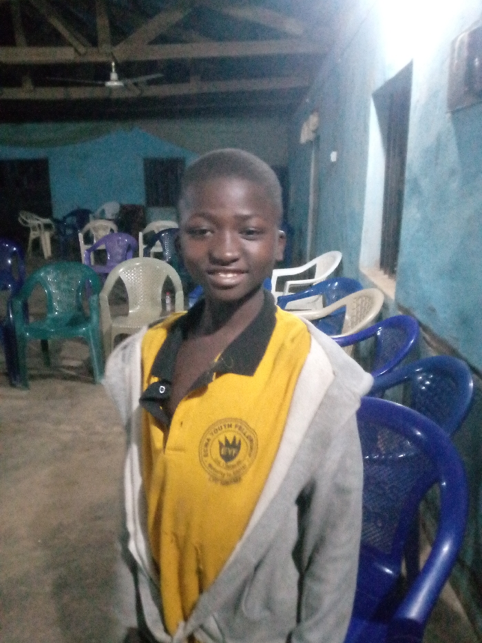 A young individual with dark skin and short dark hair stands facing the camera in an indoor setting in Agban, Nigeria