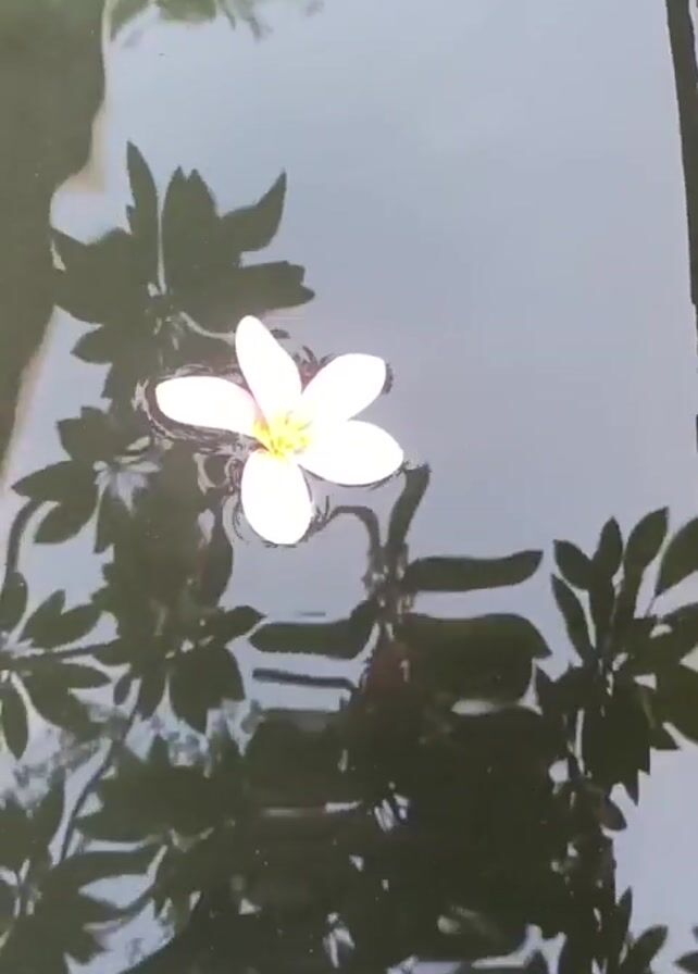 - "single white plumeria flower floating in a pool of water" by FM-ZUfDk1, licensed under CC BY 4.0
