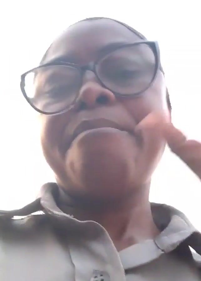 person wearing glasses and a gray shirt, filmed from a low angle. The person moves their hand in front of the camera. The background is a bright white sky. The video appears to be taken with an itel P40 phone.