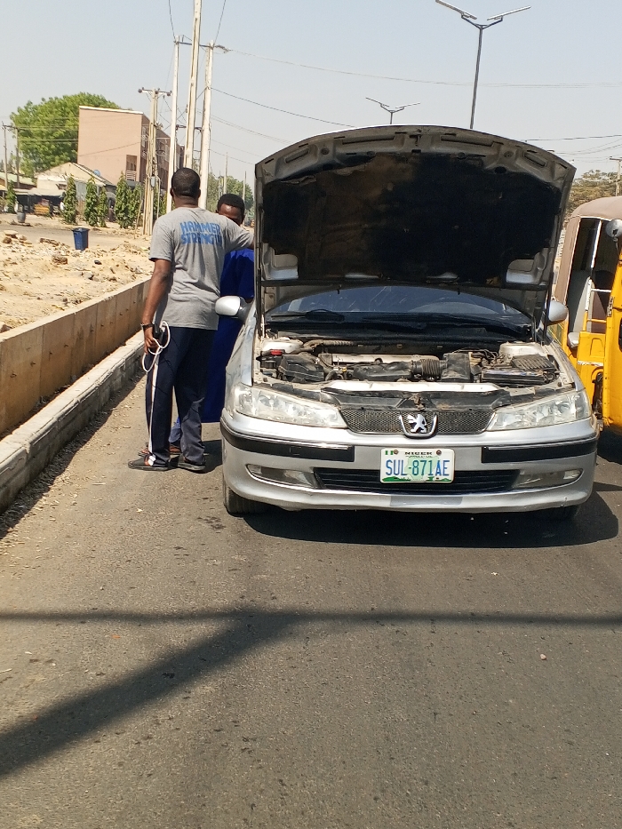 This image depicts a roadside scene in Tarauni, Nigeria, under clear daylight conditions