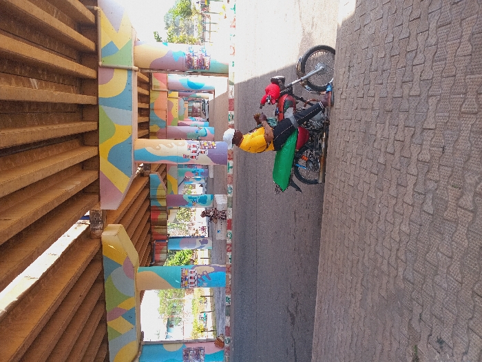 The image captures a daytime scene under the Jos Terminus flyover in Jos, Nigeria