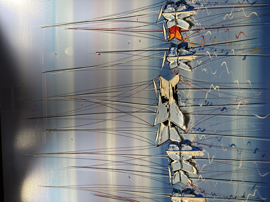 - "This is a vertical painting rendered in an impasto technique, depicting approximately eleven sailboats moored in calm water under a diffused sky" by FM-n6yWE2, licensed under CC BY 4.0