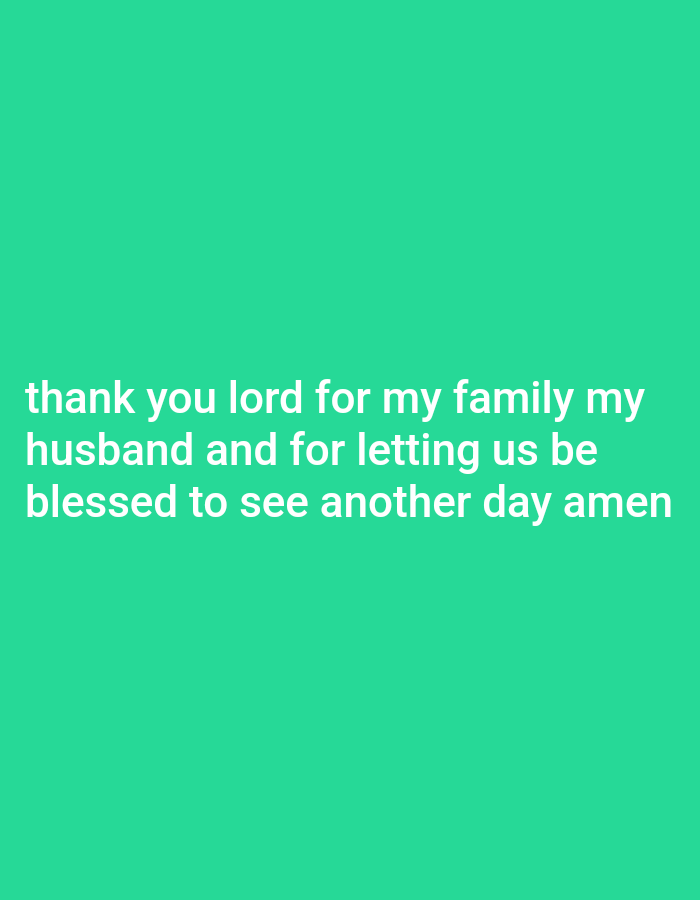 The image presents a textual expression of gratitude to God. The words "thank you lord for my family my husband and for letting us be blessed to see another day amen" are prominently displayed in white font against a vivid, uniform green background. The text appears to be a prayer or affirmation, conveying thankfulness for family, a husband, and the gift of a new day. The overall tone of the image is one of faith and appreciation.