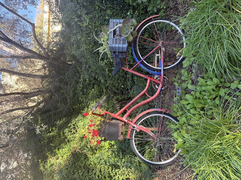- "A red vintage bicycle rests among green foliage" by FM-grnl23, licensed under CC BY 4.0