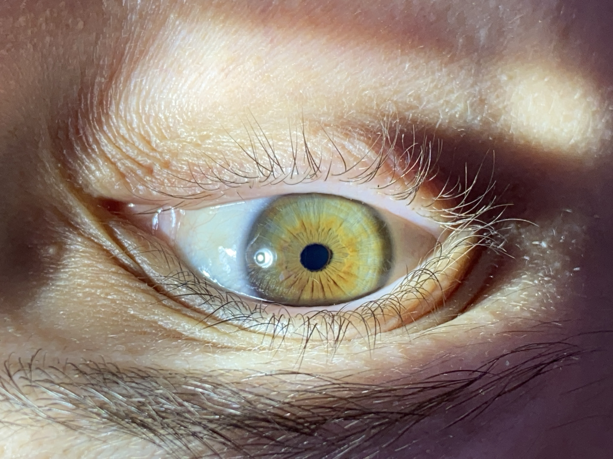 - "A close-up, detailed image shows a human eye with a light yellow-green iris and a dark pupil" by FM-M4Ogq1, licensed under CC BY 4.0