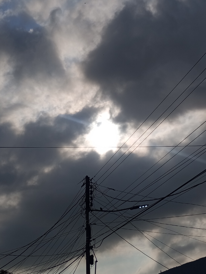 - "The scene depicts a late afternoon or early morning sky over Guacara, Venezuela, characterized by dense, dark grey stratocumulus clouds partially obscuring the sun" by FM-5zxmK2, licensed under CC BY 4.0