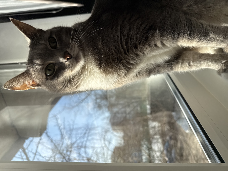 - "A grey tabby domestic cat with white chest and paw markings is seated on a white interior windowsill" by FM-HdjVs2, licensed under CC BY 4.0