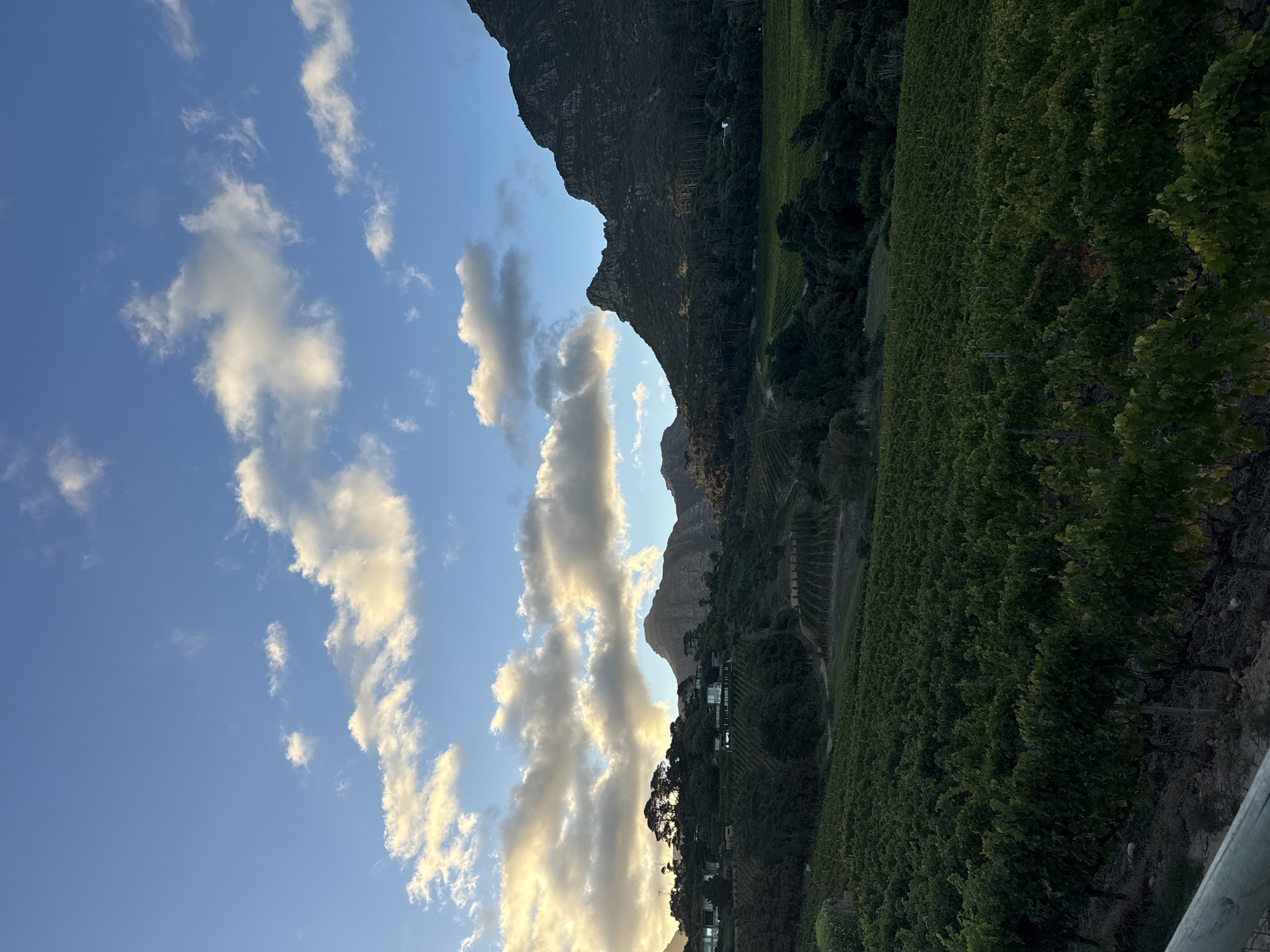 - "The image captures a scene in Cape Town, South Africa, featuring a vineyard in the foreground, a mountain range in the mid-ground, and a blue sky with scattered clouds in the background" by FM-qzRJ63, licensed under CC BY 4.0