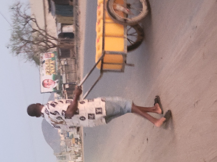 - "A man pulls a yellow cart with bicycle wheels along a street" by FM-tQkEt2, licensed under CC BY 4.0