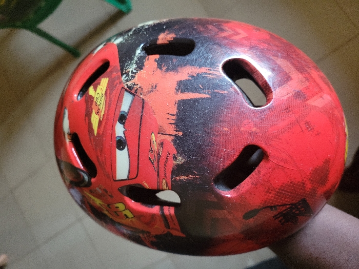 - "A red and black helmet, adorned with graphics of the character Lightning McQueen from Disney Pixar's "Cars," is depicted" by FM-m6iwH3, licensed under CC BY 4.0