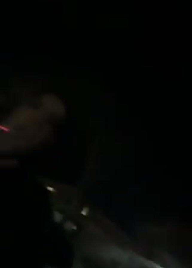 A dark outdoor scene shows a woman smoking a cigarette. She appears to be standing near a parked car. The lighting is poor, making details difficult to discern. The environment seems to be a street or parking area at night.