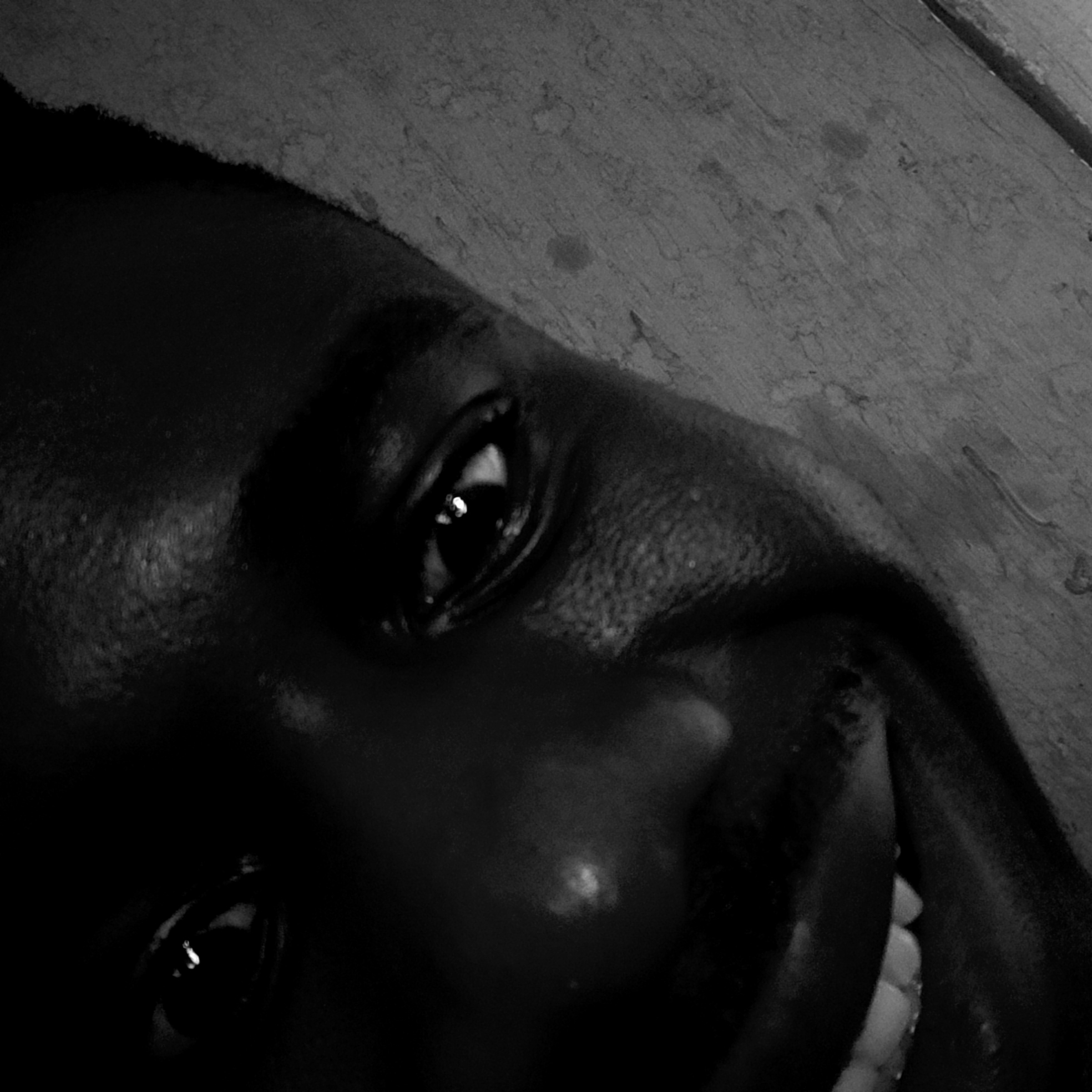 A close-up, black and white photograph shows a portion of a person's face, specifically the right eye, nose, and mouth. The person has dark skin and is smiling, revealing teeth. The background appears to be a wall with a rough texture. It is not possible to determine the location of Narayi, Nigeria from this image.