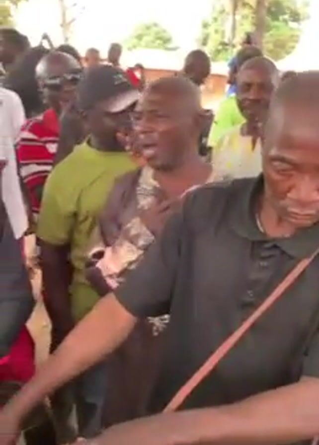 gathering of men outdoors, likely in a village or rural area