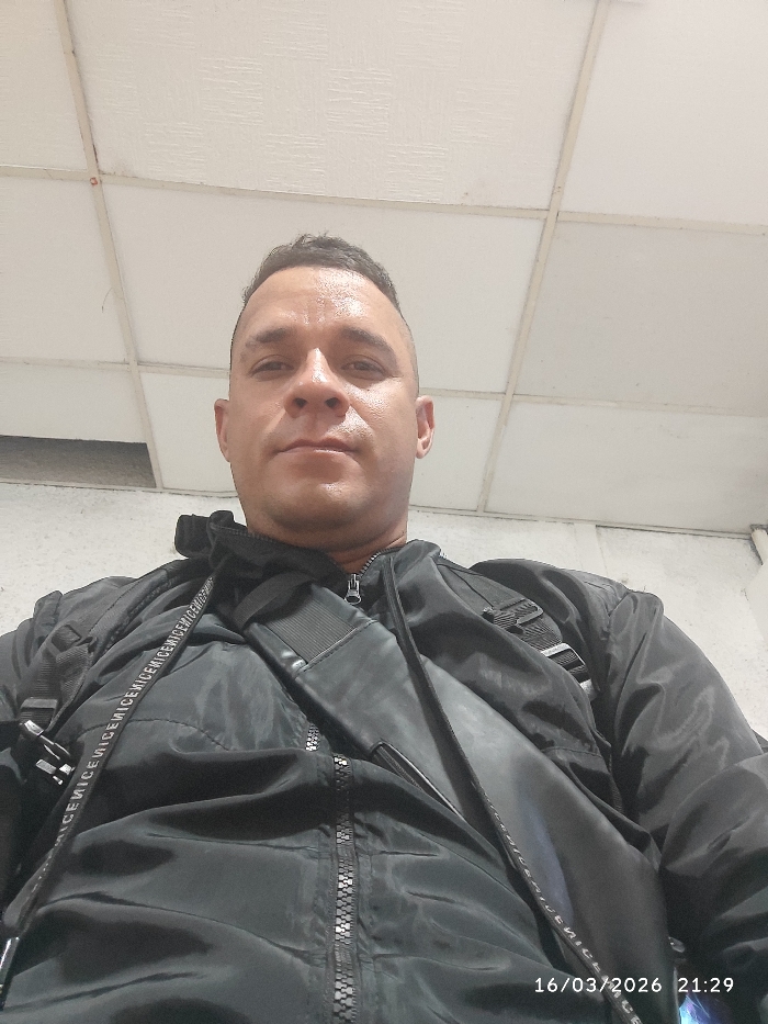 The scene depicts a single adult male in an indoor setting within the city of San Diego, Venezuela, on March 16, 2026, at 21:29