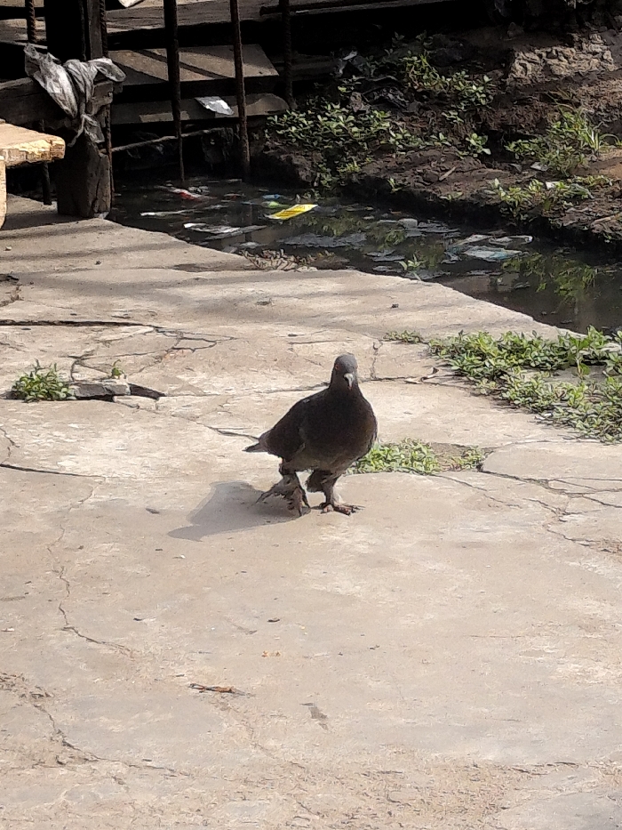 - "A dark-feathered pigeon stands centrally on a cracked, light-grey concrete surface in Alaiyabiagba, Nigeria, illuminated by bright sunlight" by FM-pLBwv1, licensed under CC BY 4.0