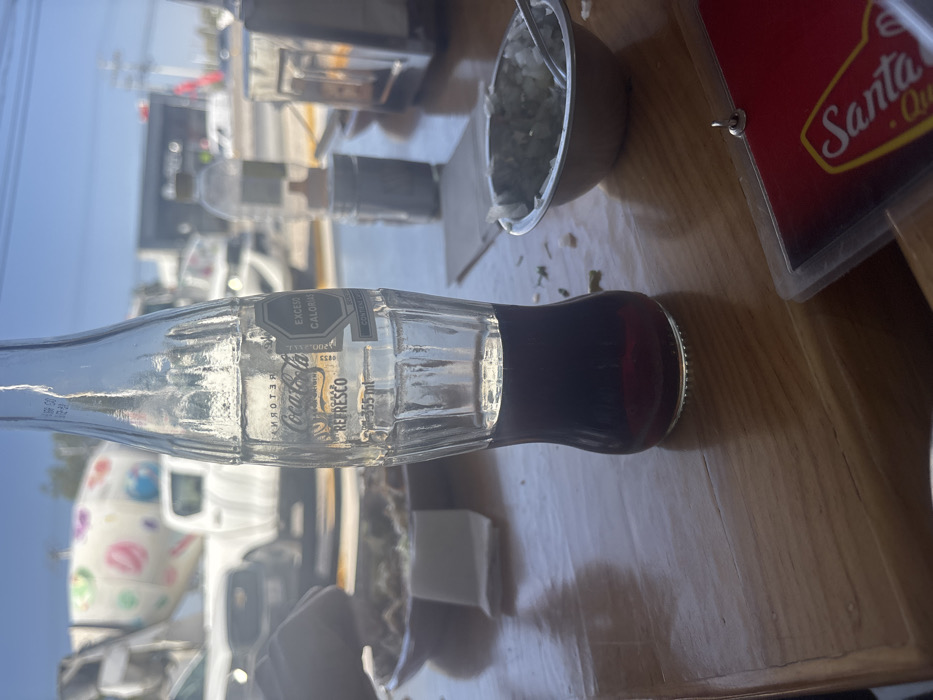 - "A tilted, close-up shot shows a Coca-Cola bottle partially filled with dark liquid, lying horizontally on a wooden table" by FM-Yy1EH3, licensed under CC BY 4.0