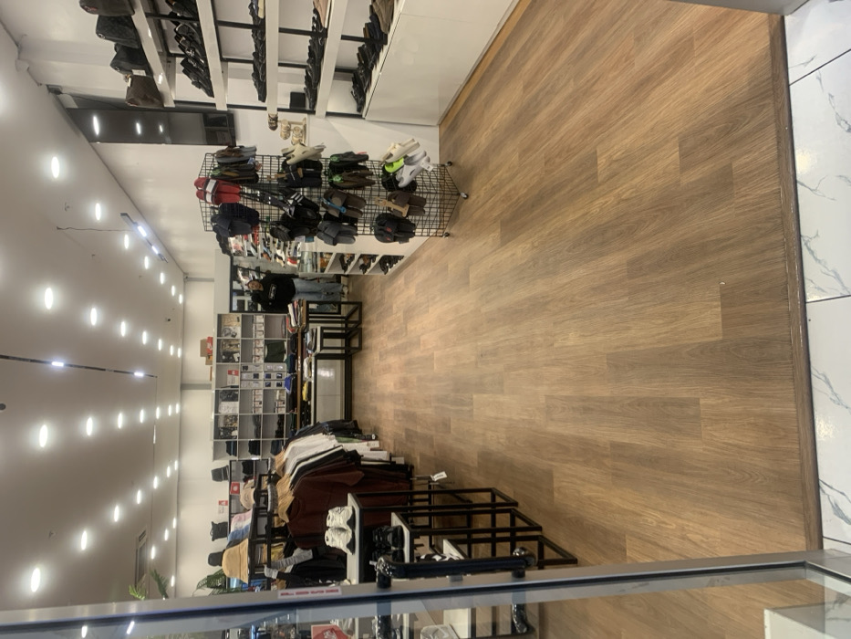 This image depicts the interior of a retail store located in Sangotedo, Nigeria, specializing in clothing, footwear, and accessories