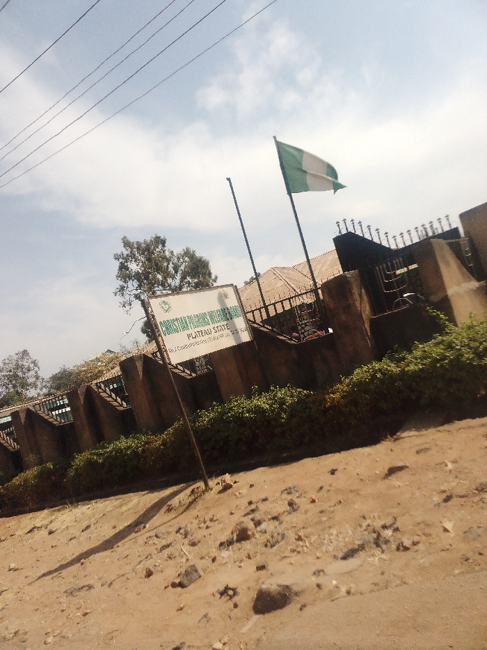 The image displays the exterior of the Christian Pilgrims Welfare Board, Plateau State, situated in Jos, Nigeria