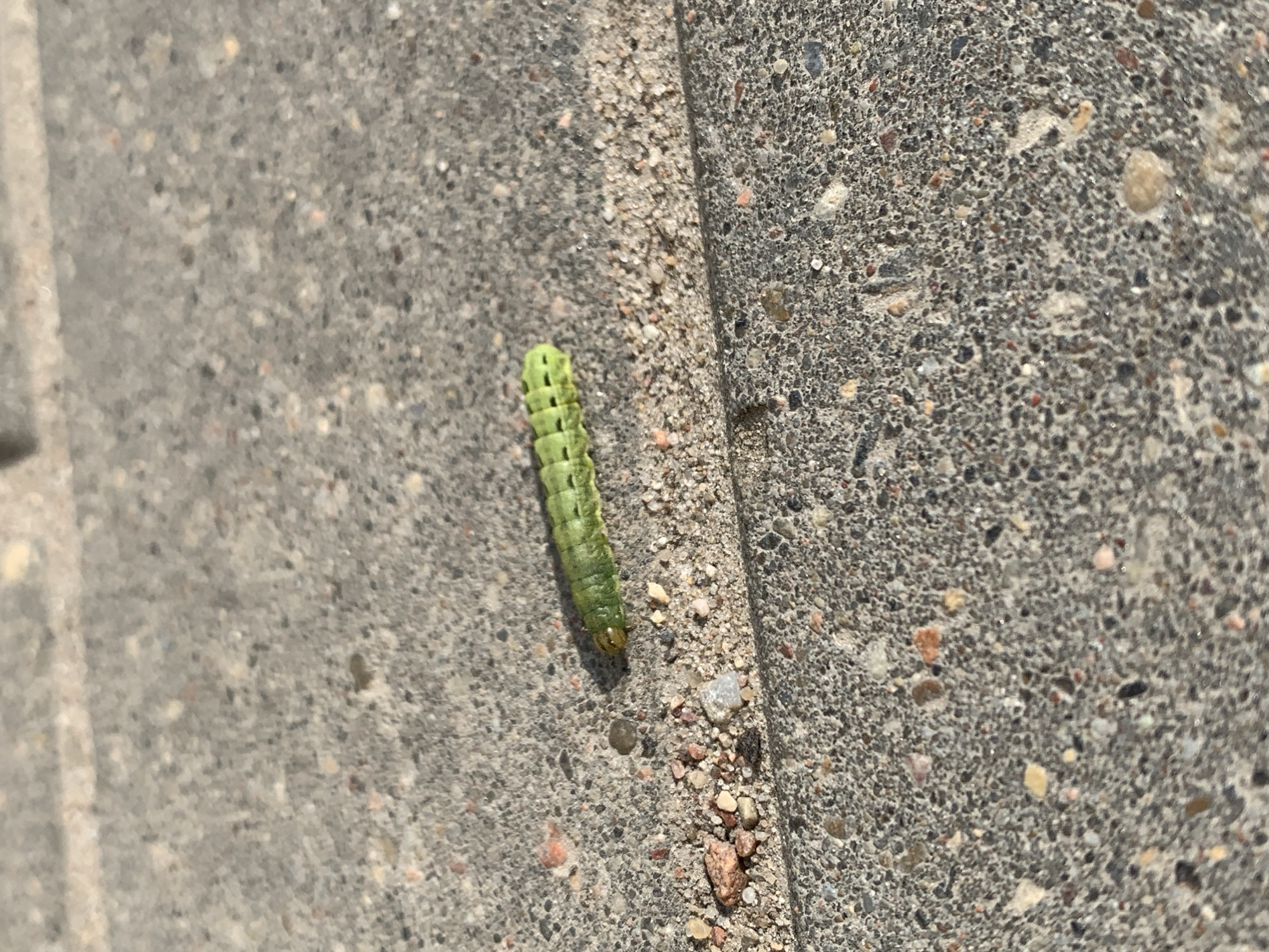 - "A green caterpillar is crawling on a gray concrete surface next to a seam" by FM-h4gri1, licensed under CC BY 4.0