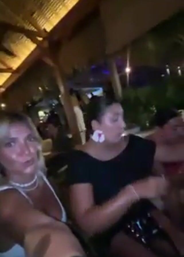 The video, taken at night, features a group of people in what appears to be an outdoor bar or club setting