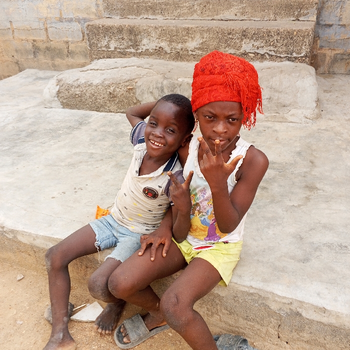 - "In Adankolo, Nigeria, two children are seated on a light grey concrete ledge outdoors" by FM-zGgZ32, licensed under CC BY 4.0