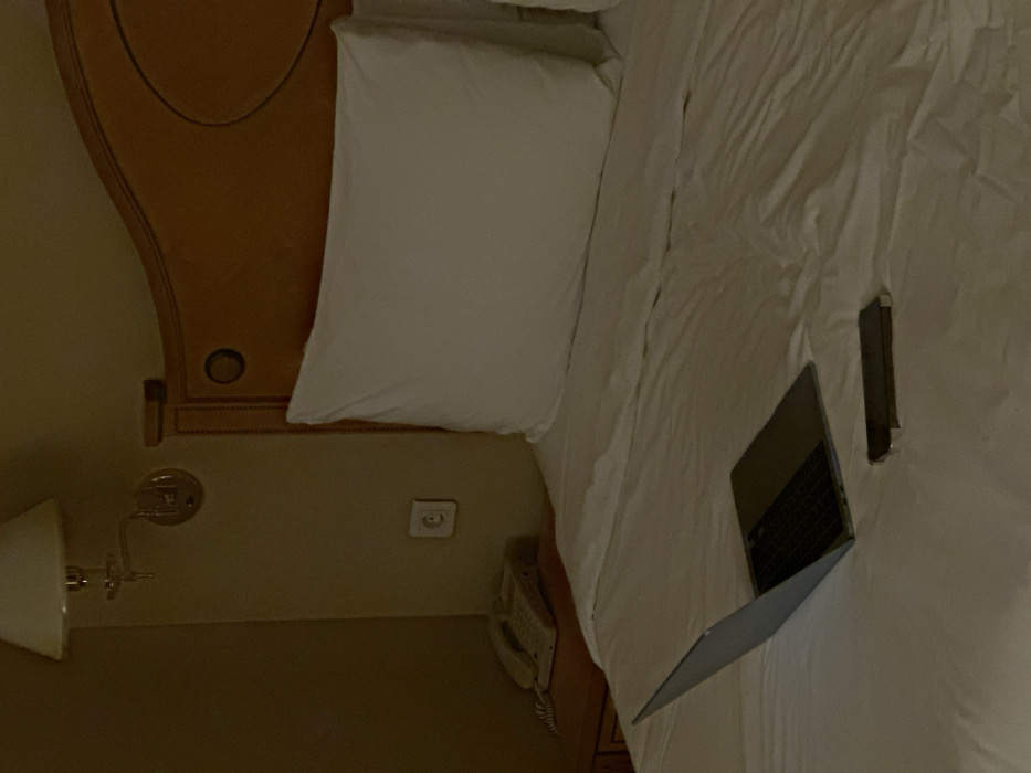 - "A bed with white sheets, a white pillow, and a dark-screened laptop sitting on top" by FM-3OYS02, licensed under CC BY 4.0