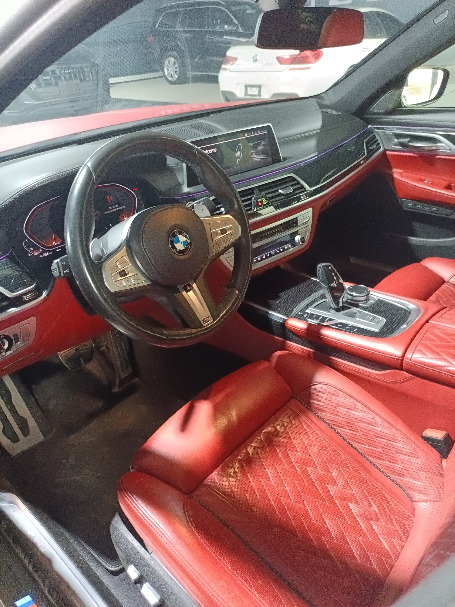 interior of a BMW 7 series with red leather seats