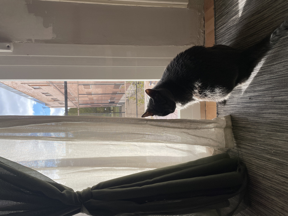 - "The image depicts an indoor scene within a building in Madrid, Spain, focusing on a gray cat positioned near a window" by FM-E8Nbf1, licensed under CC BY 4.0