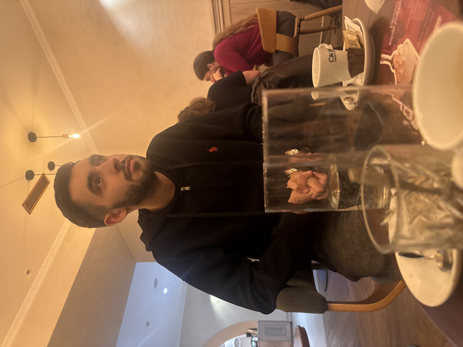 The image captures an indoor scene within a "Cacao Coffee & Fine Chocolate" establishment located in Grad Rijeka, Croatia