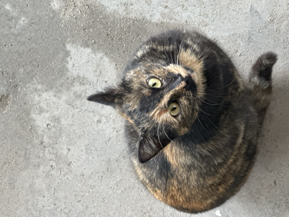 - "A single domestic cat, exhibiting a tortoiseshell coat of black, dark brown, and orange-tan patches, is positioned on a grey, textured concrete surface in Harmanli, Bulgaria" by FM-Ml7LO2, licensed under CC BY 4.0