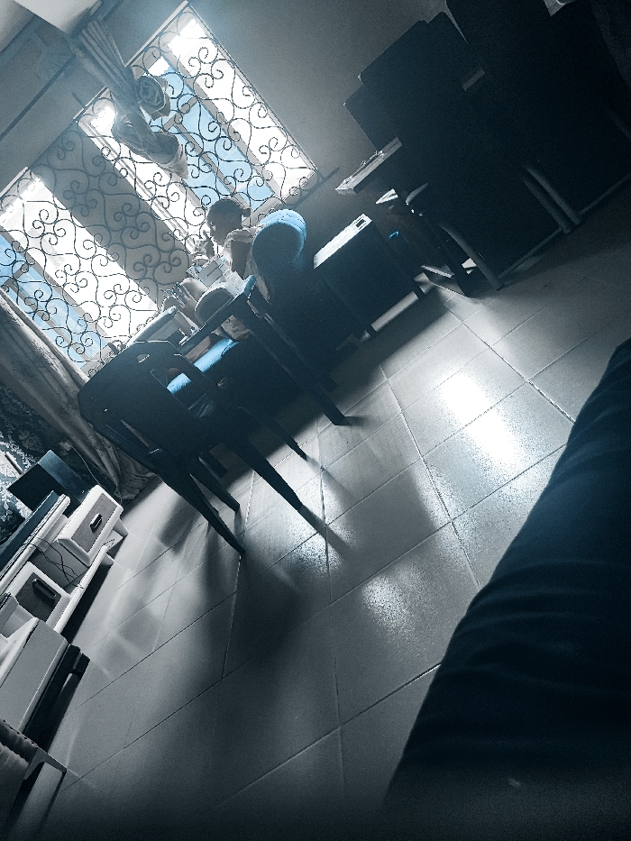 - "An interior scene in Iju, Nigeria, depicted from a low angle, features a tiled floor and furniture arranged for work or study" by FM-oISyg2, licensed under CC BY 4.0