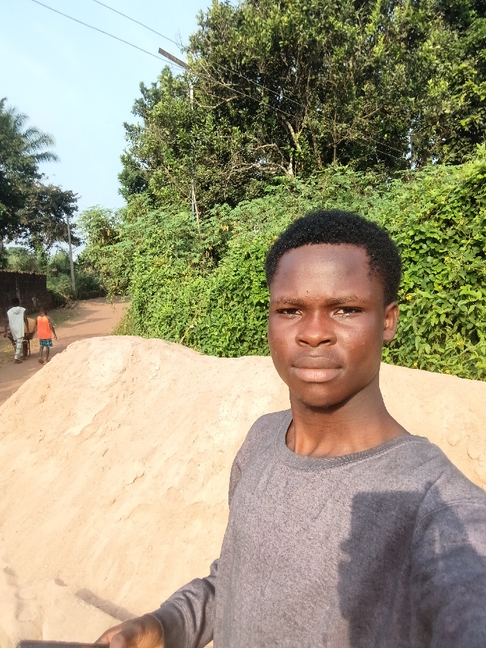 A daylight, eye-level photograph captures a young Black male taking a selfie in Eziudo, Nigeria