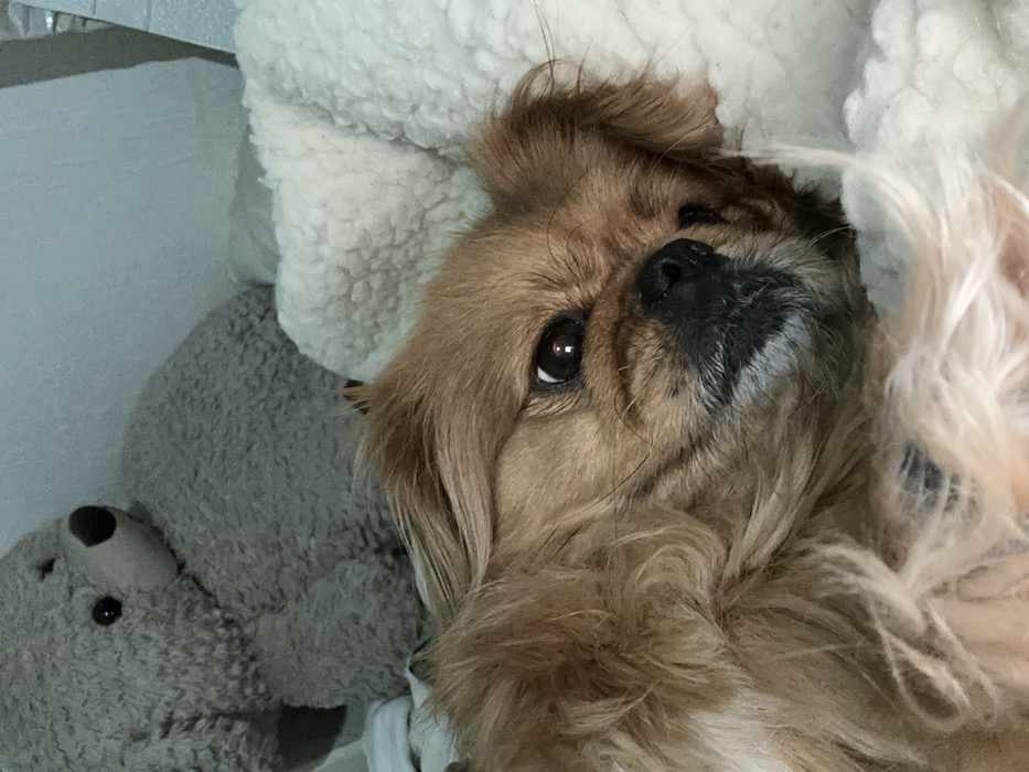 - "The image depicts a small, long-haired dog, possibly a Pekingese or Shih Tzu breed, resting in an indoor environment within the city of Semchinovo, Bulgaria" by FM-RIcHm1, licensed under CC BY 4.0