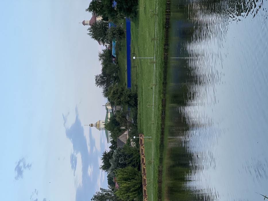 - "This image displays a panoramic view of a section of Karelichy, Belarus, captured across a body of water under a light blue sky with scattered white clouds" by FM-PtRti1, licensed under CC BY 4.0