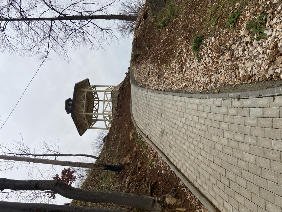 - "A curving stone path leads uphill toward a white gazebo" by FM-1ntxd2, licensed under CC BY 4.0