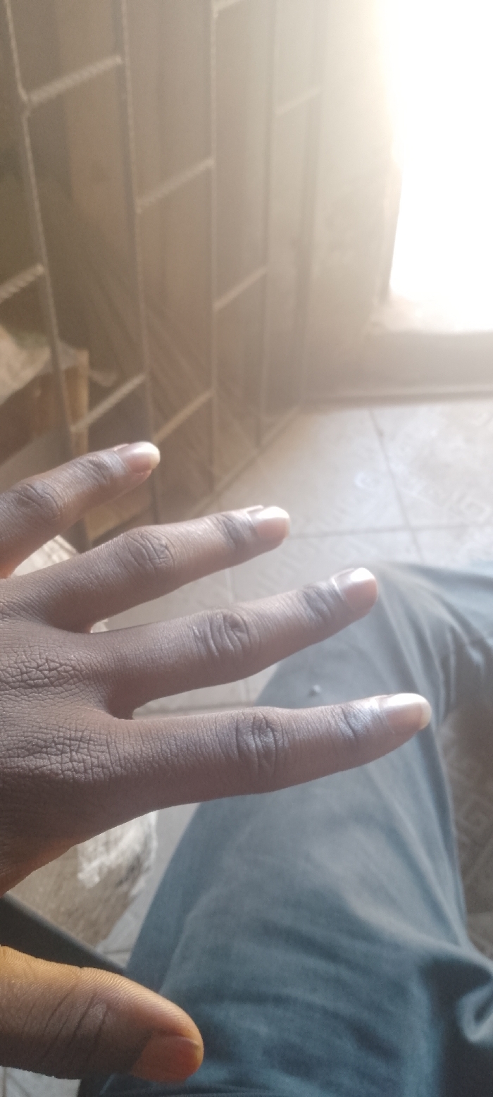 - "A close-up photograph depicts the left hand of an individual with a dark skin tone, extending from the bottom left toward the center-right of the frame" by FM-Oscsw1, licensed under CC BY 4.0