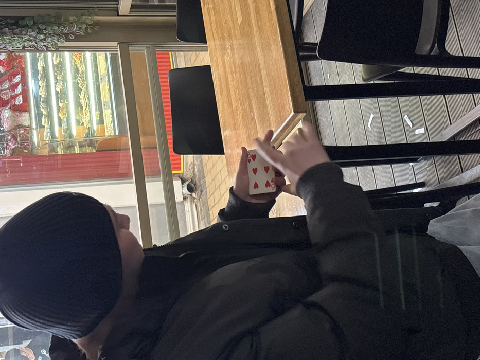 - "The image captures a person manipulating playing cards inside what appears to be a cafe or commercial establishment in Sofia, Bulgaria" by FM-USvwE2, licensed under CC BY 4.0