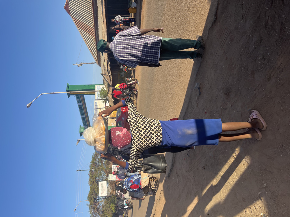 - "A woman balances a tray of goods on her head as she walks along a dusty road" by FM-tOLbh2, licensed under CC BY 4.0