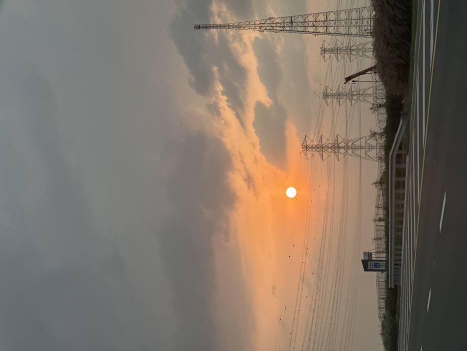 - "The image depicts a roadside scene in Ghantout, United Arab Emirates, under a sky with mixed grey and orange clouds, illuminated by a bright orange sun positioned slightly left of center" by FM-IkaP23, licensed under CC BY 4.0