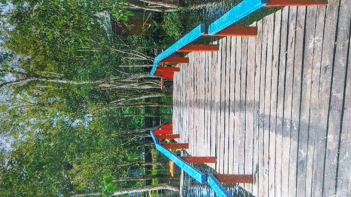 - "The image depicts a weathered wooden pedestrian bridge extending over a dark body of water into a dense, forested wetland environment in Palangka Raya, Indonesia, indicative of the city's riverine or peat swamp areas" by FM-IbCbr2, licensed under CC BY 4.0