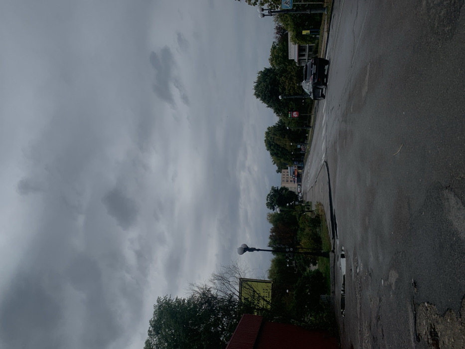 The image depicts an overcast street scene in Bohuslav, Ukraine, specifically looking northeast along Yaroslava Mudroho Street from the vicinity of Yaroslava Mudroho Street, 1