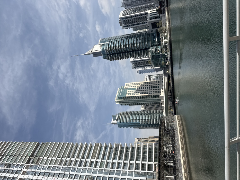 - "The image depicts a daytime cityscape within Dubai Marina, United Arab Emirates, characterized by a developed canal surrounded by numerous high-rise buildings under a bright blue sky with scattered cirrus clouds" by FM-CnI5F2, licensed under CC BY 4.0
