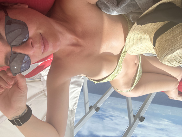 - "A female subject is depicted lying supine, facing the camera, outdoors in an ocean-view environment identified as Unknown, Bahamas" by FM-rJjiz2, licensed under CC BY 4.0