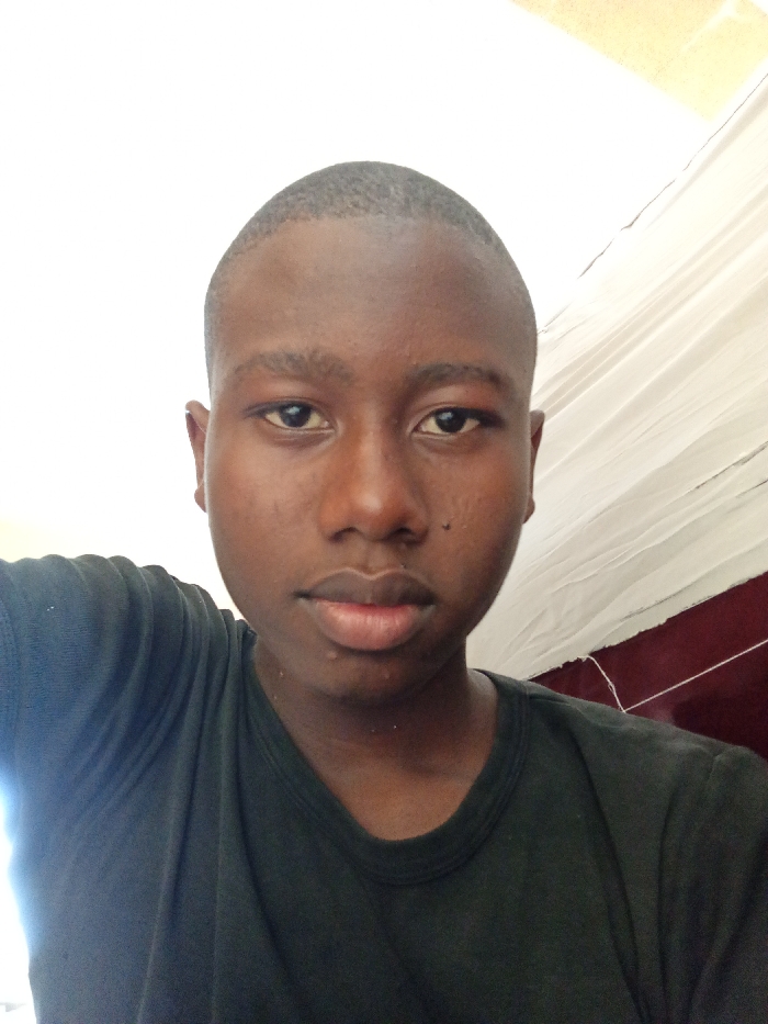 A close-up portrait of an individual with dark skin and short, dark, cropped hair, captured in Zango-ndaji, Nigeria