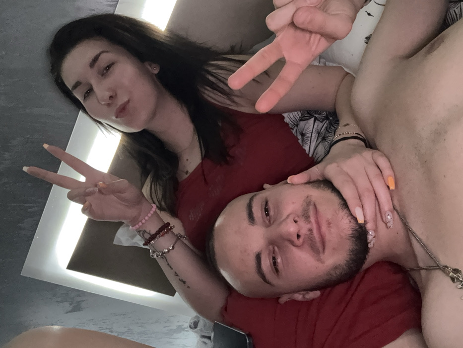The scene depicts two individuals posing for a photograph in a bedroom in Plovdiv, Bulgaria